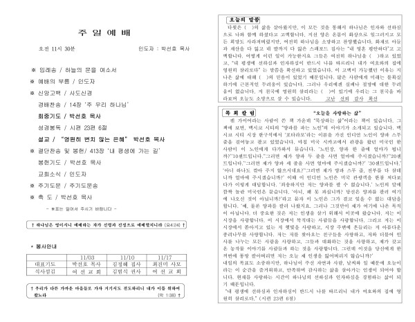 20241103 교회 주보 페이지 정보 작성자 늘푸른교회 댓글 0건 조회 1,265회 작성일 24-11-25 20:57 목록 본문 교회 주보 이전글20241110 교회 주보 24.11.25 다음글20241027 교회 주보 24.11.25 댓글 0 댓글목록 등록된 댓글이 없습니다. 목록