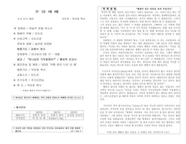 20240609 교회 주보 페이지 정보 작성자 늘푸른교회 댓글 0건 조회 1,602회 작성일 24-06-08 19:33 목록 본문 교회 주보 이전글20240616 교회 주보 24.06.15 다음글20240602 교회 주보 24.06.01 댓글 0 댓글목록 등록된 댓글이 없습니다. 목록